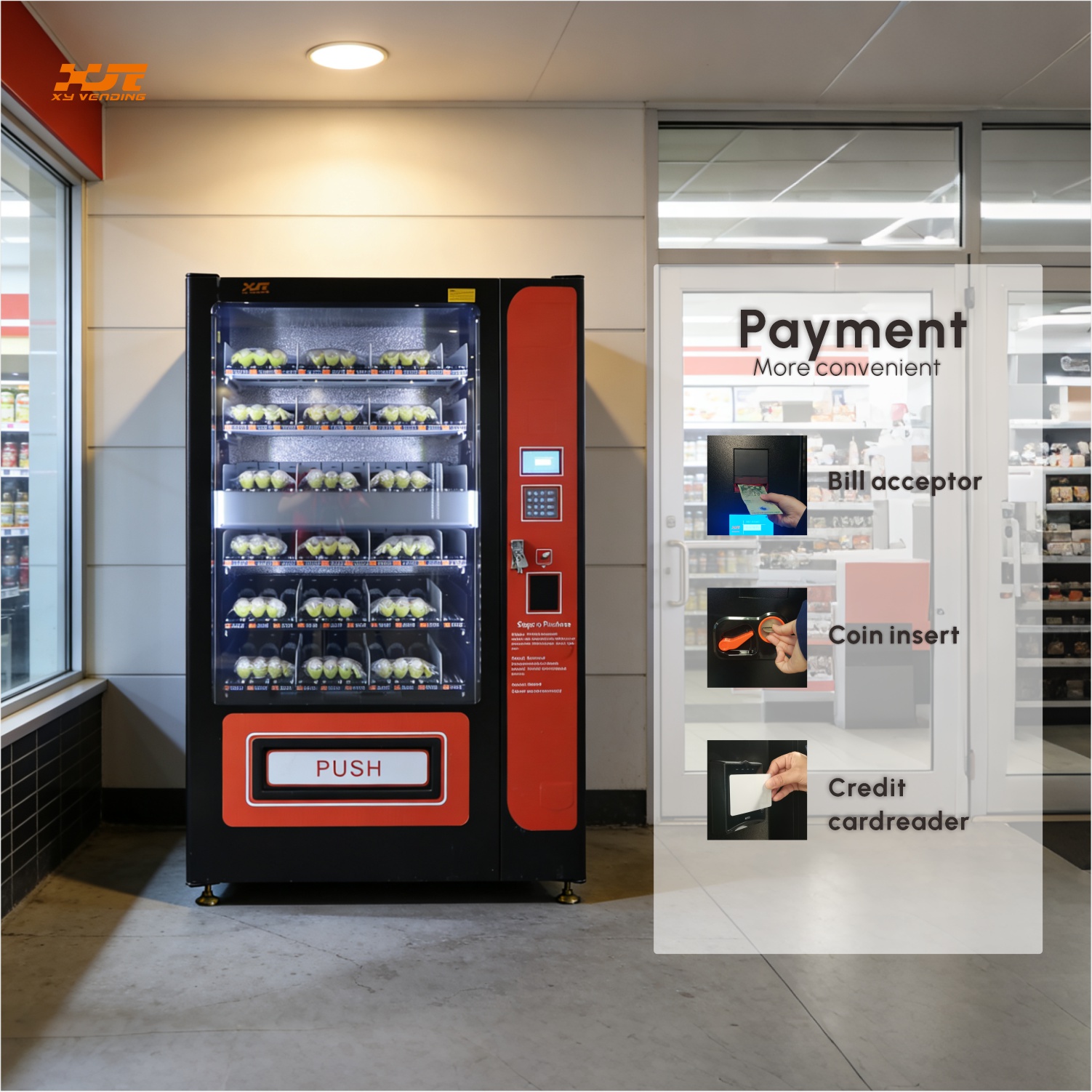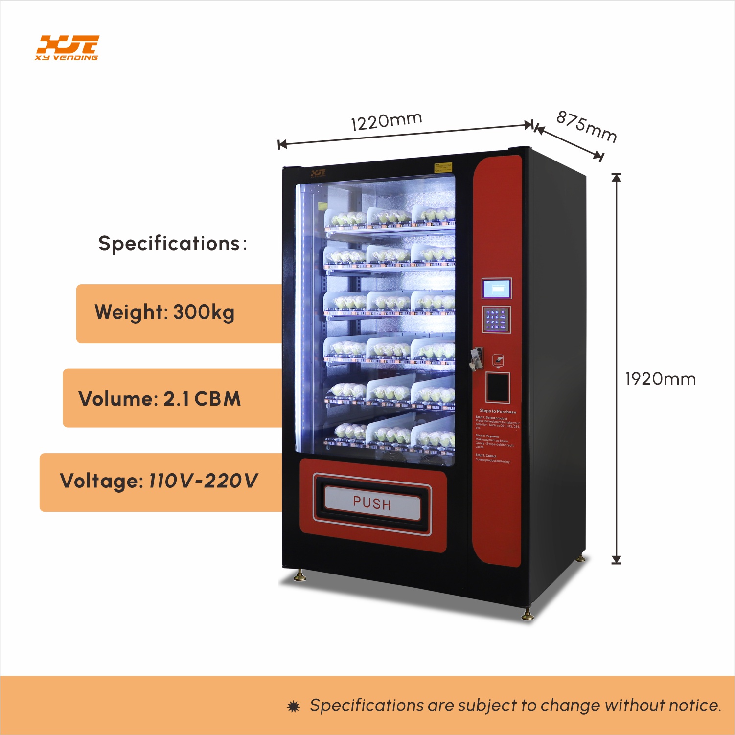 A vending machine specifically designed for selling fresh fruits and eggs, with adjustable width of the shelves. The lowest temperature can be maintained at 2 degrees Celsius, effectively preventing food from spoiling. This makes it suitable for operation in residential areas.