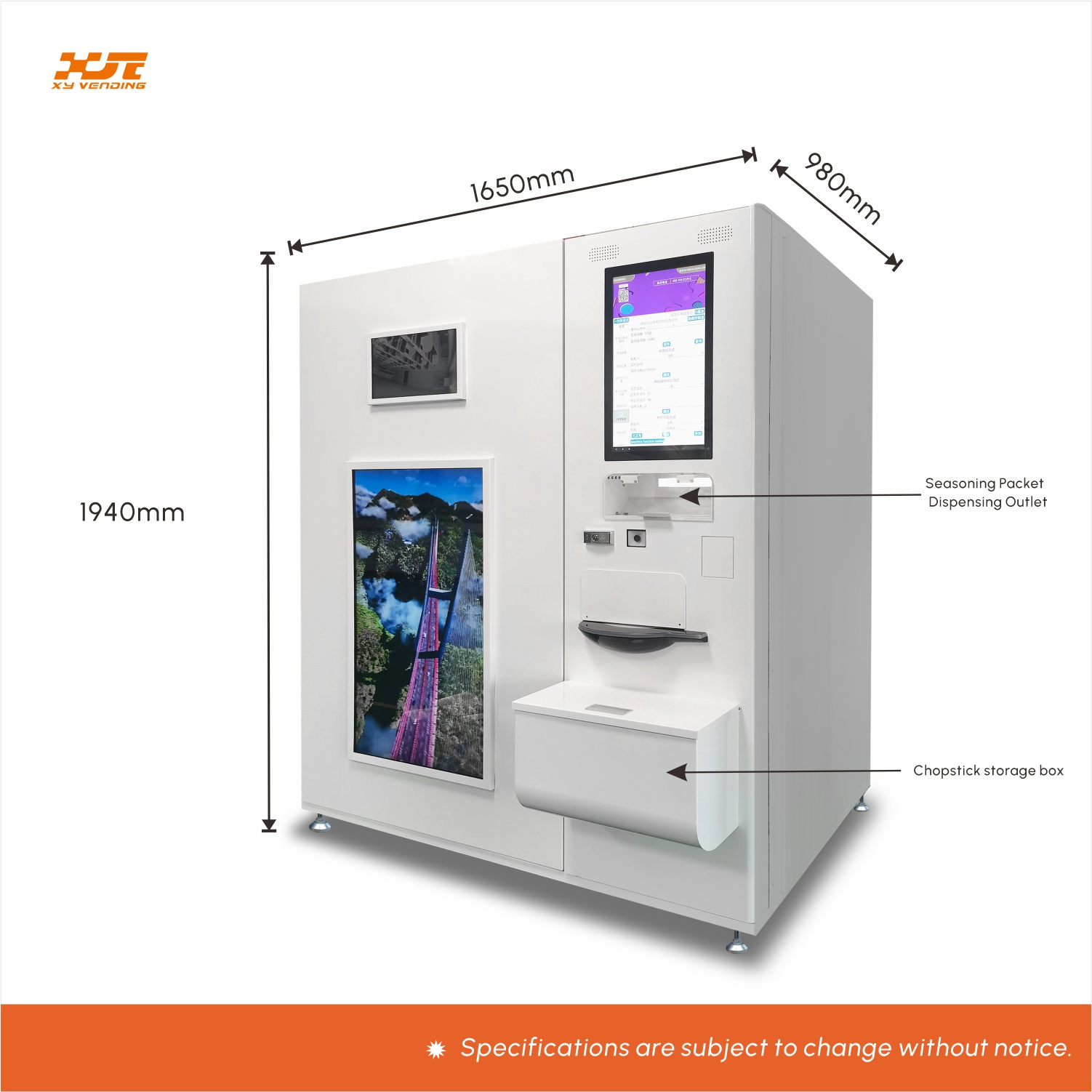Deliciousness is right here for you to see! This hot food vending machine is equipped with an internal monitoring system. The hot food can be seen throughout the contactless selling process, allowing customers to enjoy healthy and safe food. At the same time, it is also equipped with a perforator to prevent the sealed lunch box from bursting during the heating process. Merchants can set the heating time to 90 seconds according to the different types of food. An external utensil box is also installed to facilitate customers to take and eat the food immediately.