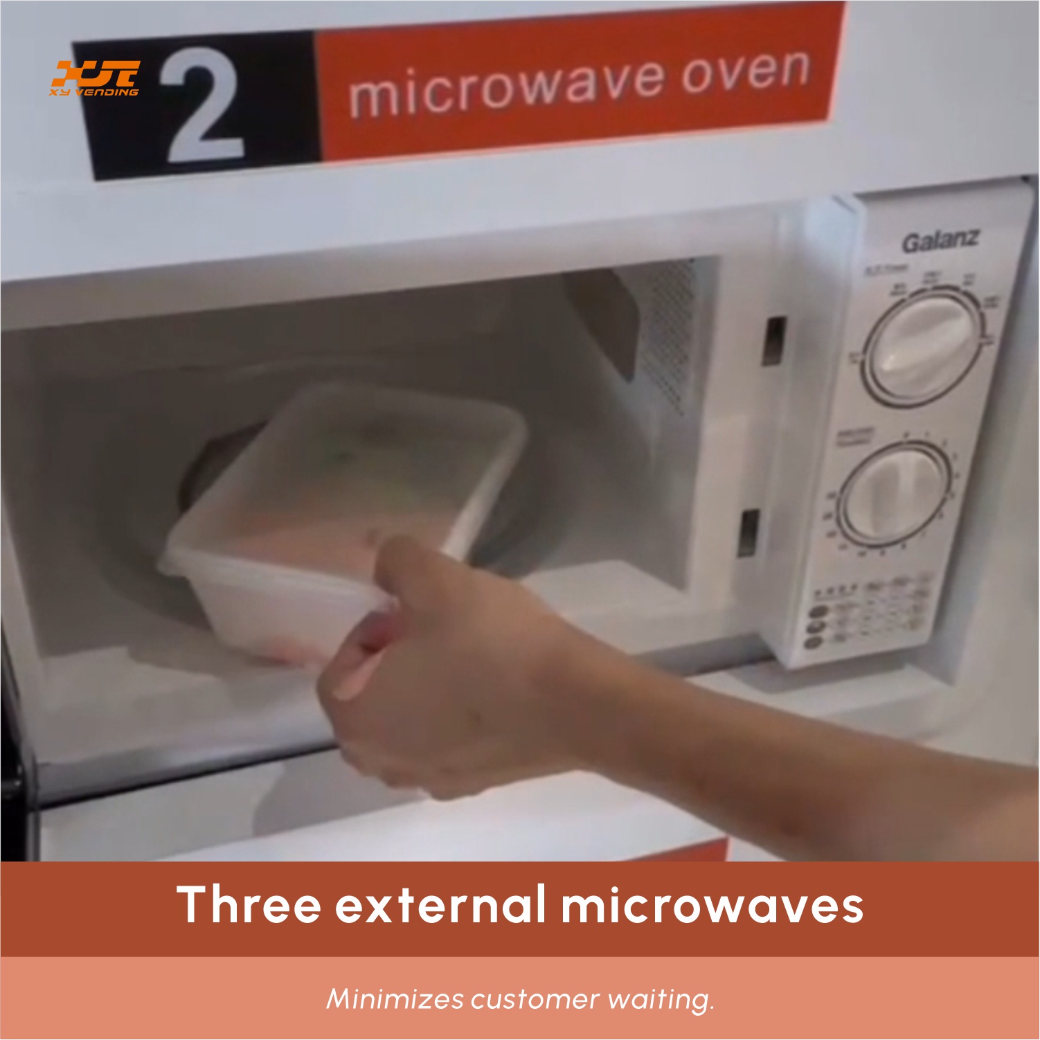 Combination hot food vending machine, which combines the traditional XY-SLY-10C-21.5″ model vending machine with an external microwave oven, is also very popular in the market. Its advantage lies in the fact that the left master product cabinet can accommodate different types of shelves to meet the sales requirements for various products. After the user completes the shopping, they will have the permission to use the microwave oven on the right to heat the food within 90 seconds. The three microwave oven configurations effectively reduced the waiting time for customers during peak meal times.